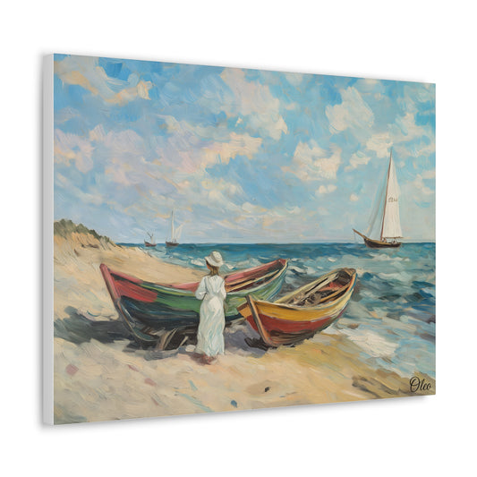 Vintage Elegance by the Sea - Fishing Boats Oil Painting Print