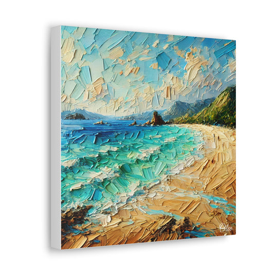 Vibrant Coastal Textured Oil Painting Print on Canvas