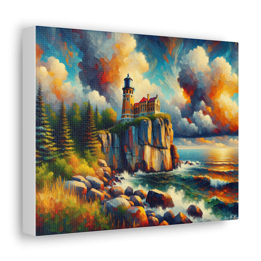 Canvas Print: Eternal Beacon - An Impressionist Tribute to Split Rock Lighthouse