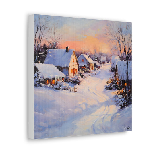 Winter Glow: A Serene Village Scene - A Timeless Canvas Print